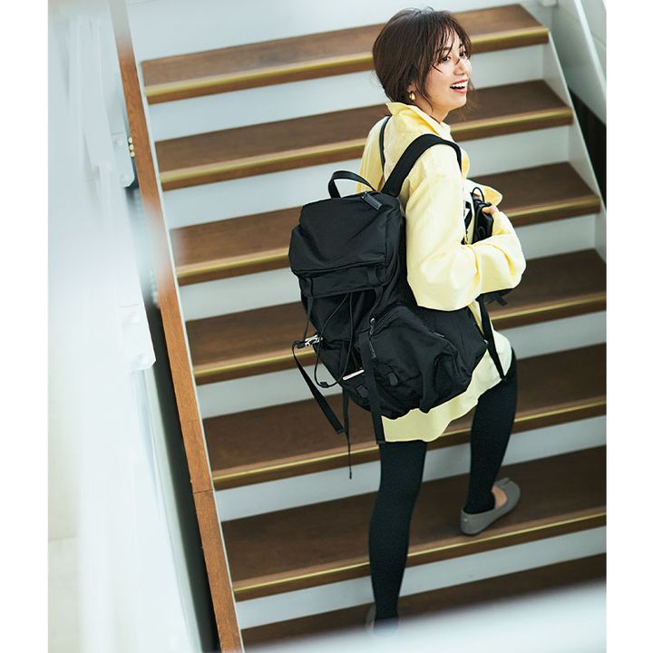 ナイロン素材が軽々。サイドファスナーで荷物が取り出しやすい機能美も充実。バックパック¥50,600(オーラリー メイド バイ アエタ/オーラリー)タンクトップ¥25,300(サクラ/インターリブ)チノパンツ¥25,300(アンド アールシー/カレンソロジー 二子玉川)ピアス¥36,300リング¥22,000(ともにete bijoux/エテ)リング※5月25日発売¥11,000(ジュエッテ)バングル¥28,600(フィリップ オーディベール/デミルクス ビームス 新宿)ステンレスボトル¥3,050レジャーシート¥5,720(ともにフレッシュサービス/フレッシュサービスヘッドクォーターズ)