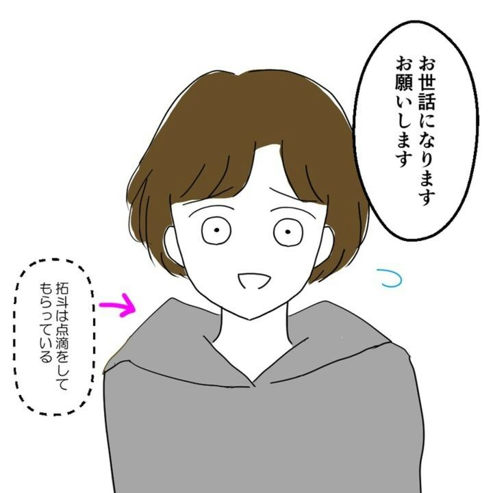 息子の拓斗くんがロタウイルスだと分かり、付き添い入院が決まった和葉さん。看護師さんから丁寧な説明を受け夫にも現状を報告しようとします。