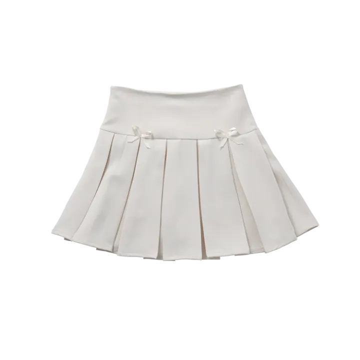 糖度高めなミニ丈のプリーツスカートは、リボンのあしらいでさらに甘々に♡ どんな服をあわせてもガーリーに仕上げてくれるから心強い!