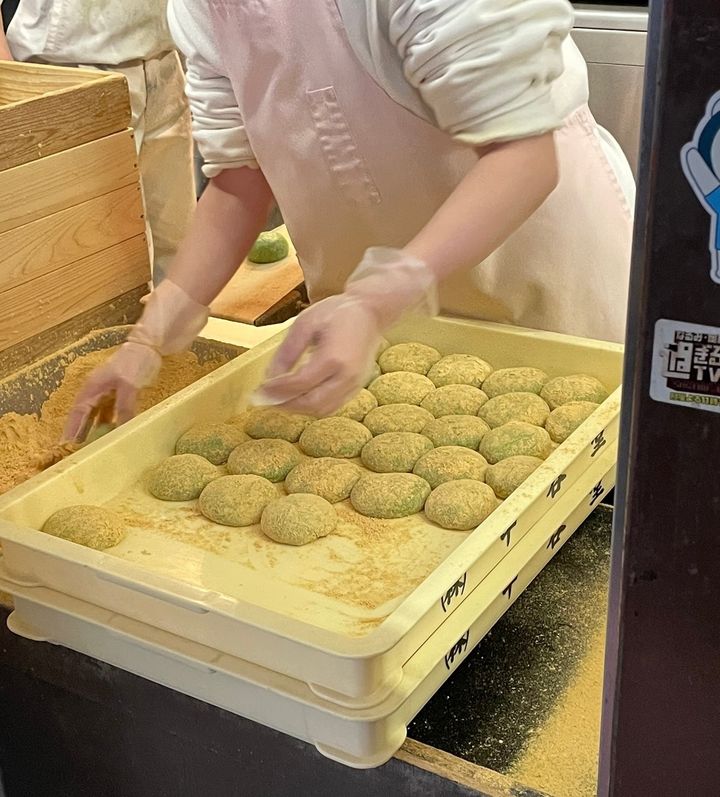 ふんわりとよもぎの香りが感じられ、あたたかくて1口目はびっくりするほどふんわり、そしてモッチモチで、でもしっかりとコシがあるお餅です! ひと口目からニヤニヤが止まりません😁