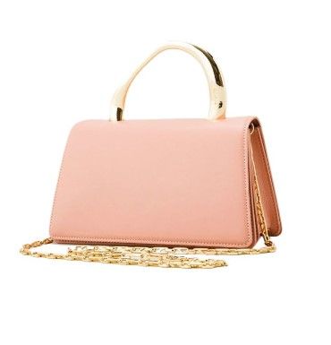 ハンドルバッグ 16,500円/LE VERNIS 洋梨を模したメタルパーツが特徴。スクエア型のかっちりしたフォルムに、ゴールドのハンドルでリッチな印象に。シーンやスタイルに応じて2WAYに使える、取り外せるショルダーストラップつき。