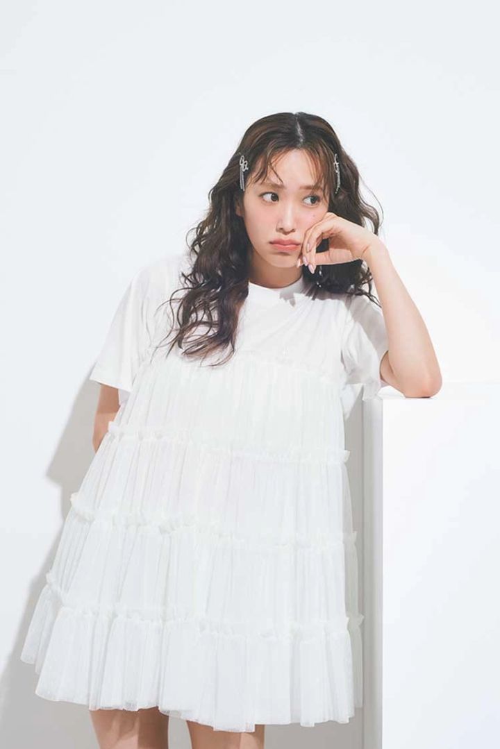 リューム感あるチュールスカートを重ねたようなデザインは、さらっと1枚で着るだけでラブリー!