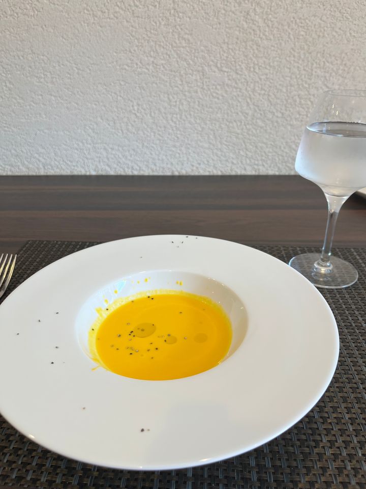 人参スープに添えられたお野菜と今が旬の鱧が絶品でした‼︎