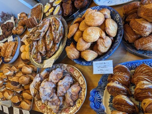 まず真ん中のテーブルの中でパッと目を惹いたのは、渦を巻いた形状のデニッシュのような「塩パン」。