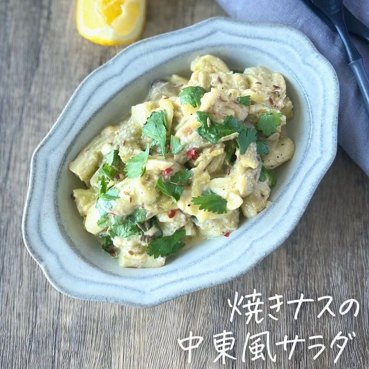 スモーキーな味わいの焼きなすに最高に合うタヒニソースで和えた中東風のサラダ。詳しいレシピは@chie_annakaさんの投稿で紹介されていますので、ぜひチェックしてみてください。