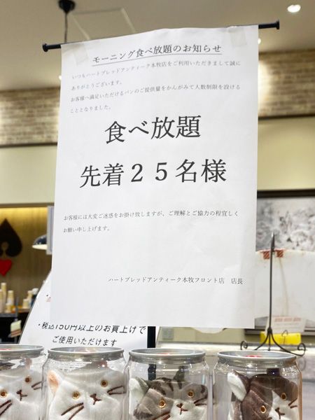 「ねこねこ食パン」「マジカルチョコリング」「あん食パン」など、菓子パンから総菜パンまでさまざまな種類のパンを販売している「ハートブレッドアンティーク」。今回「パン食べ放題モーニング」で訪ねたのは、横浜・本牧の本牧フロント1階にあるお店。1日限定25組のみ、モーニングが利用できます。制限時間は1時間。