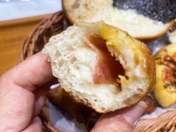 ハムを挟んで焼き上げたパンは、バジルの風味でイタリアンな味わいでした。