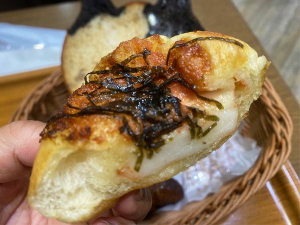 感動したのは明太子のパン。モチ入りのパンで、モチモチとした食感とやわらかなパンの食感、そこに明太子のピリ辛と海苔の風味でもぐもぐとあっという間に食べてしまいました。