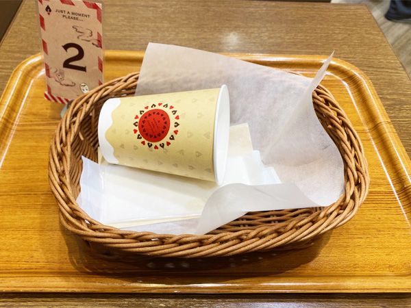 レジでモーニングを注文すると、トレーにカップとパンを入れるカゴを渡されます。席を確保したら、パン食べ放題コーナーへ行き、気になるパンをピックアップ。