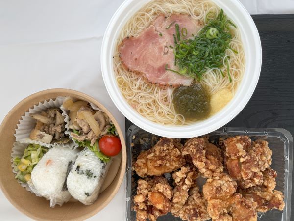 この日の昼食に選んだものです!外に出店しているお店の他に物産センターでも色々と美味しそうなものが売られているので、そこで美味しいよとおすすめされたお芋の天ぷらや唐揚げも一緒に頂きました!地元の美味しいものでお腹が満たされて毎回幸せな気分になります。