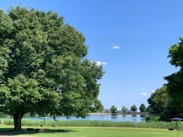 青空と緑と水辺の風景。 とにかく広々として気持ちの良い公園です。 園内の「五料沼」では、6月半ば~11月の終わりに釣りもできるそう。