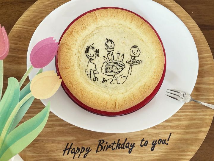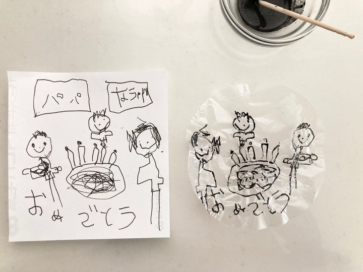 パパのお誕生日には、子供が描いた家族の絵をケーキにしてみました。