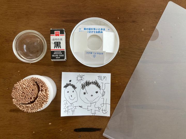 イラスト、クリアファイル、オブラート、食紅、爪楊枝
