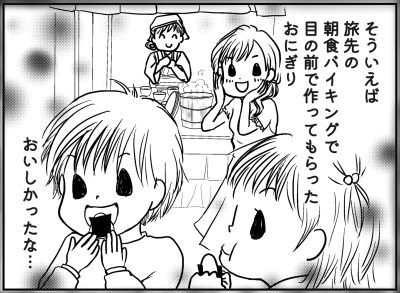 そういえば、この前旅行した時の旅館の朝食で、目の前でおにぎり作ってくれたのおいしかったなぁ。お土産に売っていたご飯のお供を具にしてもらって、目の前で握ってもらうことでさらに食欲が増してたんだなぁ…。