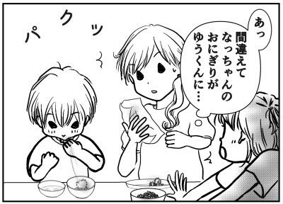 大きくなったんだからコレくらい食べてほしい、食べないと大きくなれないんじゃないじゃないのかな…。そんな不安もありましたが、とりあえず一口、一口食べられたらもう一口、と次の日からはふりかけや海苔を用意して味変しながらおにぎりを食べるようになりました。