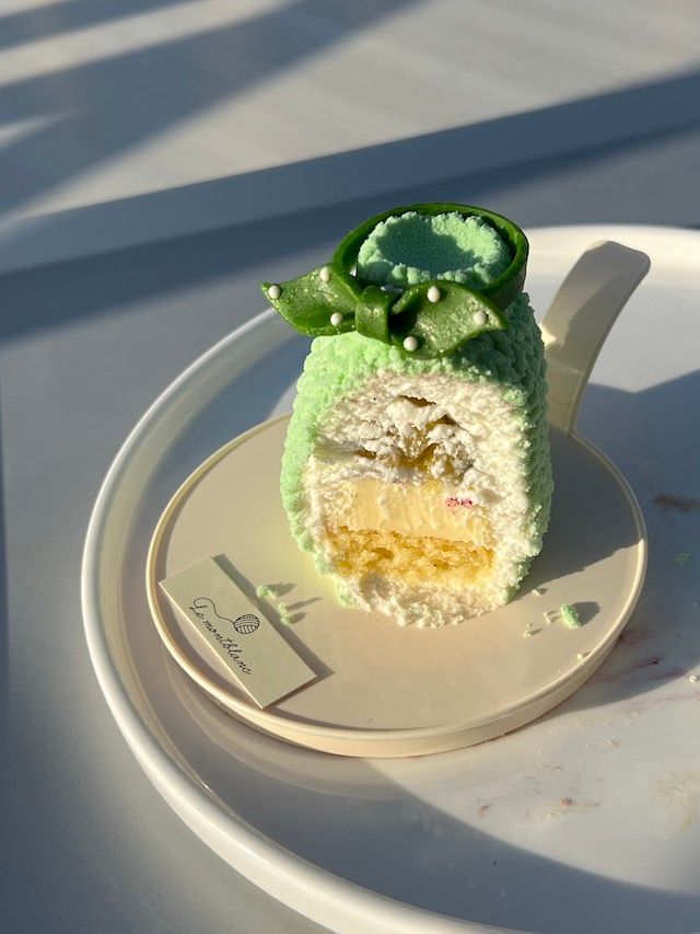 私が選んだのは、想像のつかなかったライム味。中には、パイナップルのムースが入っており、見た目より爽やかな味わいで、重たいと感じるよりペロッと食べることができました。