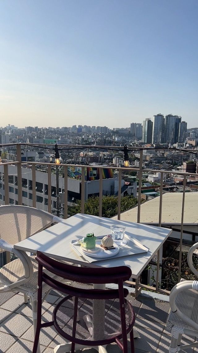 3階に上がるとソウルの街を一望できる景色が広がっていました! ここは高台に位置しており、ソウルの喧騒を忘れ、ゆっくりとおいしいケーキと景色を堪能することができます。