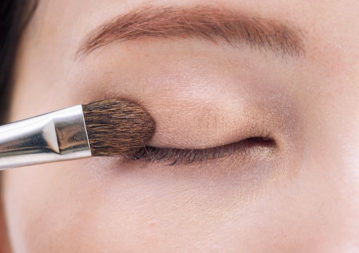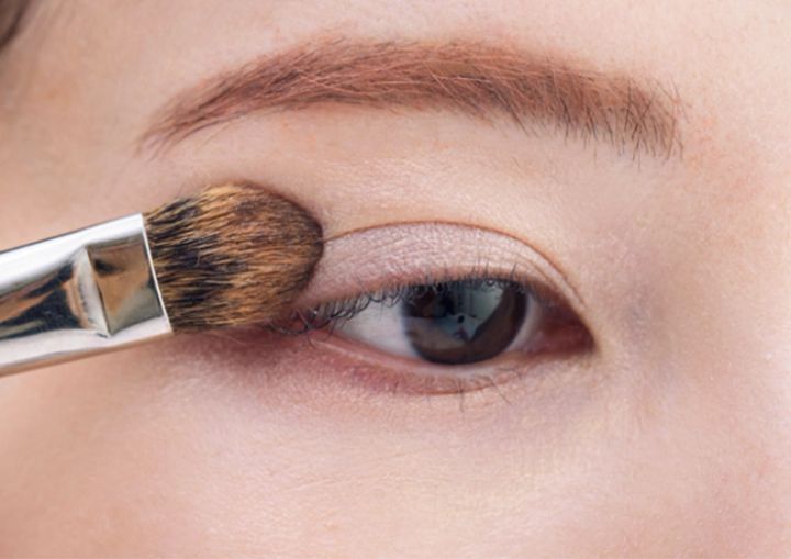 メイクをすればするほど派手になってしまう洋顔さん。上品さを出すなら淡いニュアンスカラーがおすすめです。また、アイシャドウを塗るときは、上にぼかしてアイホールを強調すると彫りが深く見えてしまうので、目尻やまつ毛のキワを強調して横に抜けるように意識するのが正解。