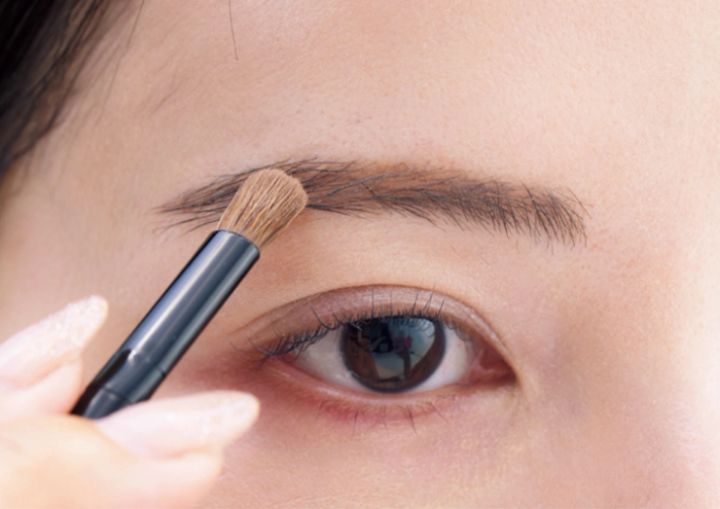 Cの一番上・淡い色を毛流れに沿って塗布したら、Dを丁寧にのせて。眉マスカラ前に淡い色をのせることで、ふわっとした眉に。