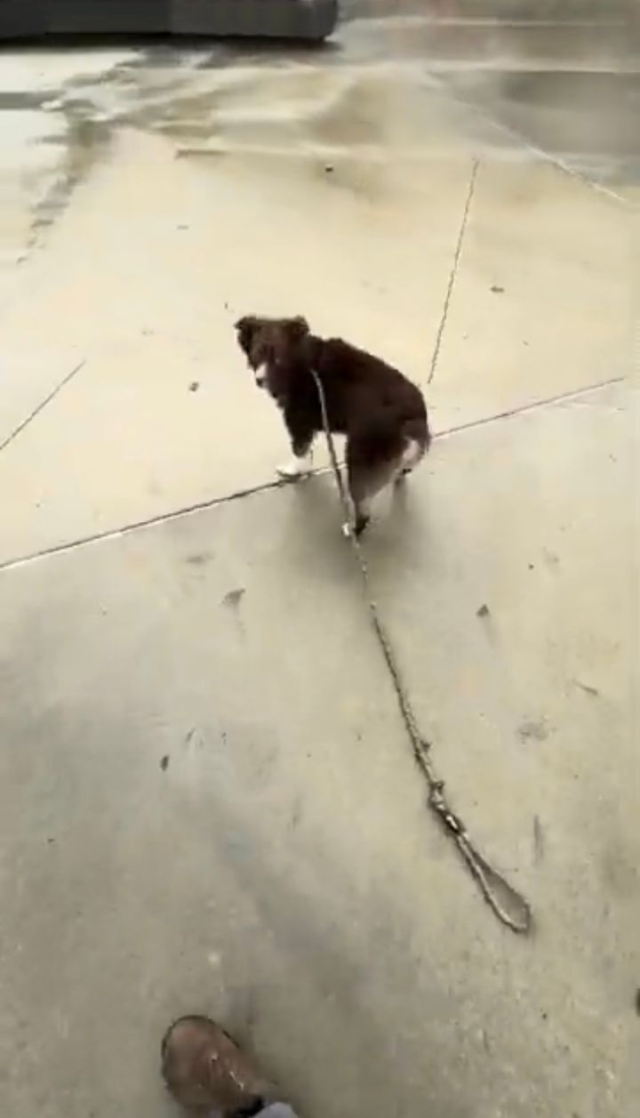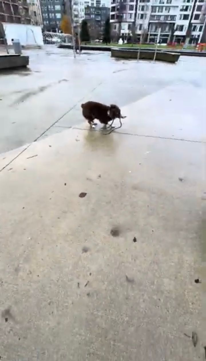 そこで飼い主さん。 わざとリードを手から離して別の方向に歩き出してみました。