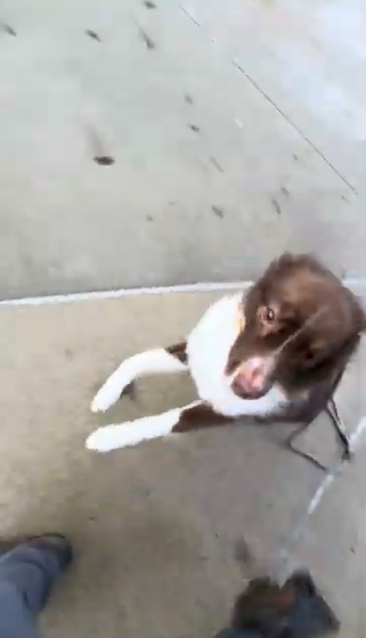 すると、アーモンドは飼い主さんの足元まで急いで駆け寄ると、なにかを訴えるように吠えながら飛び跳ねてみせました。
