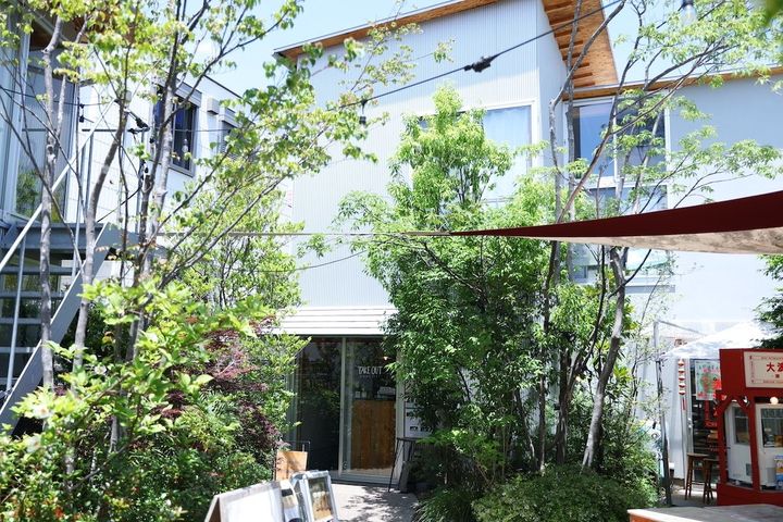 まるで公園の広場のように緑あふれる敷地内には、目当ての飲食店を目指して来る人もいれば、ご近所の人が犬と散歩をしていたり、近隣で働く人がベンチでひと休みしていたりと、自由でリラックスした雰囲気が漂っています。