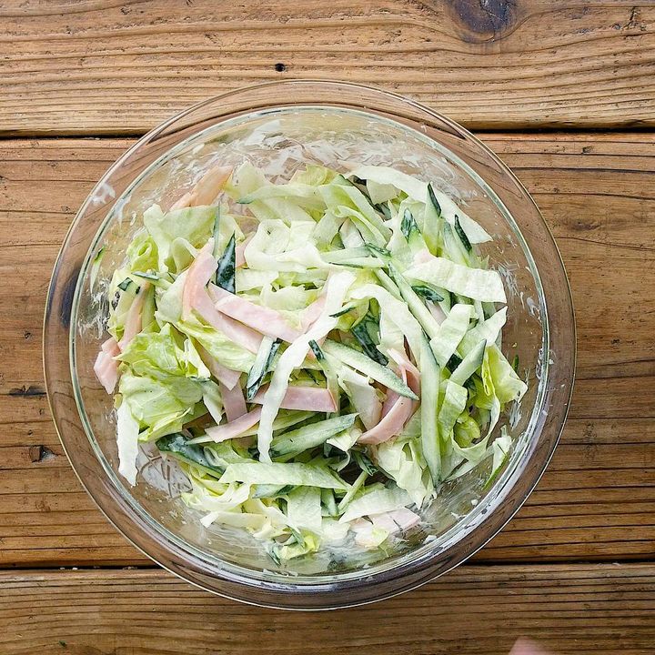 3. ひと手間で味決まる!レタスときゅうりのハムマヨサラダ