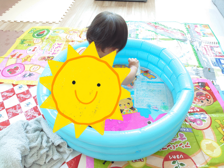 風呂で水遊びもお手軽便利ですが、見守りの観点でいうと、風呂より居間で見守る方が私は快適。なので、子どもが1~2歳のうちはビニールプールで特別感を出して、おうち水遊びを取り入れていこうと思います。