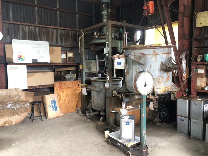 工場見学のはじまりは、こちらの配合場から。原料や配合について現物を見ながら教えてもらうことができます。