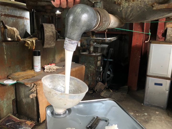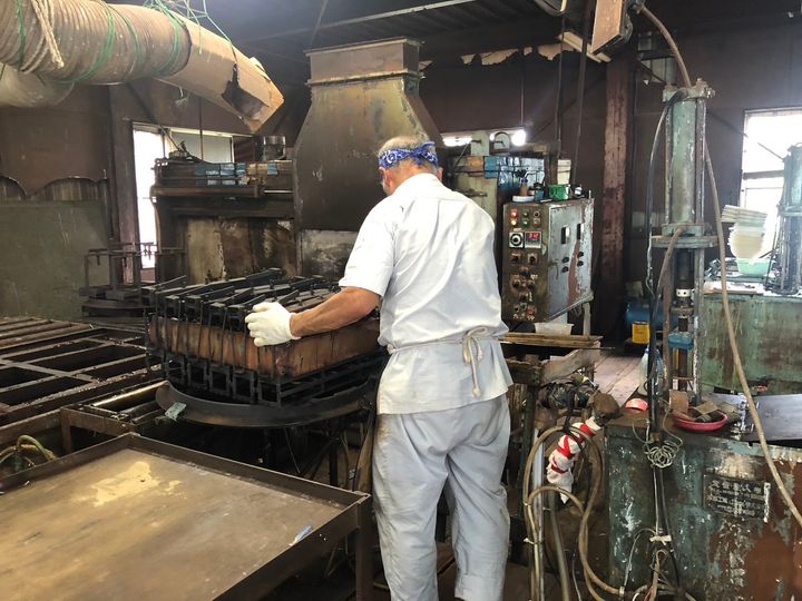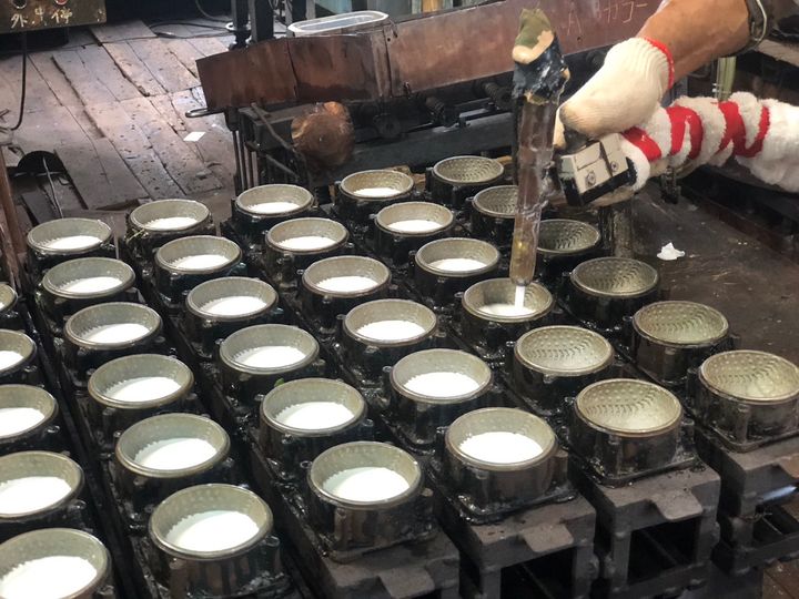 ※画像は、マイカラーボールづくりではなく、通常製造時の流し込み工程です。