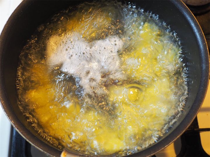 タピオカでんぷんはコーンスターチでも代用できるようですが、タピオカでんぷんを使うとよりカリッと仕上がるとのこと。