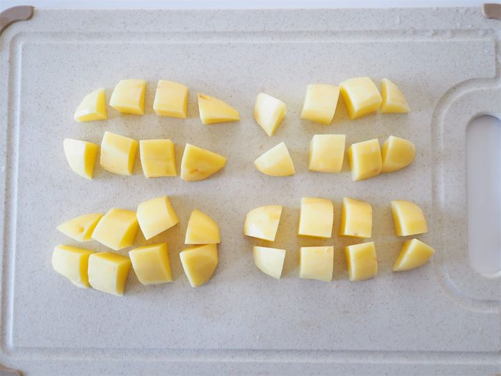 1. じゃがいもの皮、芽を取り除き、8〜10等分に切る。