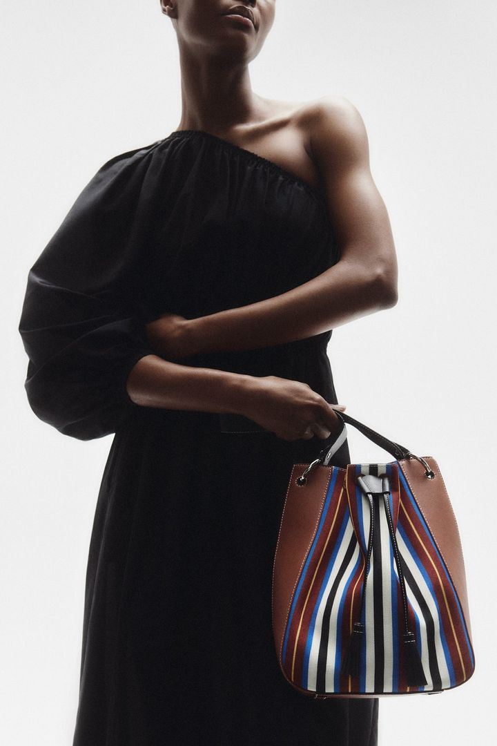 新作の「シャーロット ドローストリング」は、ストラスベリー社のジョージアン・タウンハウス近くのエディンバラのニュータウンにあるエレガントな広場にちなんで名付けられたもの。このバッグは両サイドにドローストリングがついており、クロスボディバッグやクラッチバッグとして楽しむことができる。さらにブランドを象徴するミュージックバーをドローストリングの留め具として使用している。
