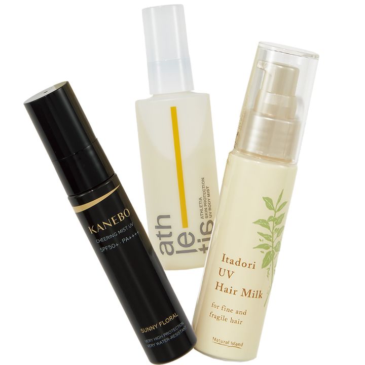 髪のUV対策には、頭皮にも使えるミストやミルクタイプの日焼け止めが鍵。保湿成分配合で、潤いを与えて、乾燥しがちな肌をケア。分け目が真っ赤&ボロボロ!事件を回避。