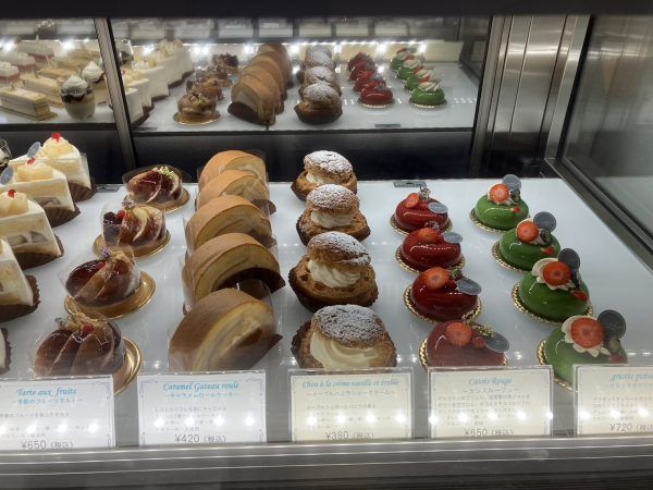 ショーケースには、お菓子が宝石のようにキラキラ美しく並んでいます。