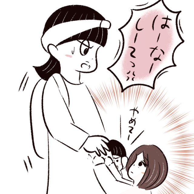 まるさんの服を掴んでしゃべり続けるおーちゃんに強めにそう言うと、
