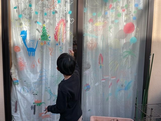 広い窓ガラスにめいっぱい落書きしちゃおう!
