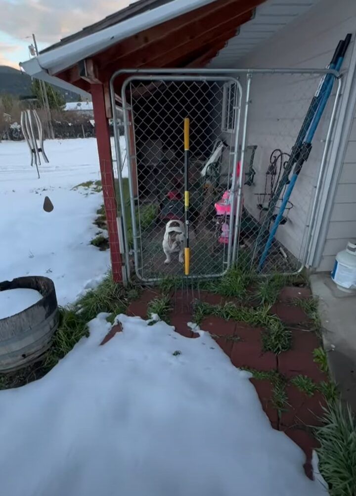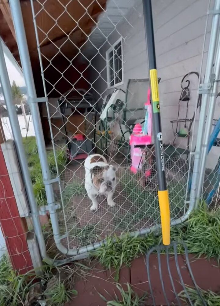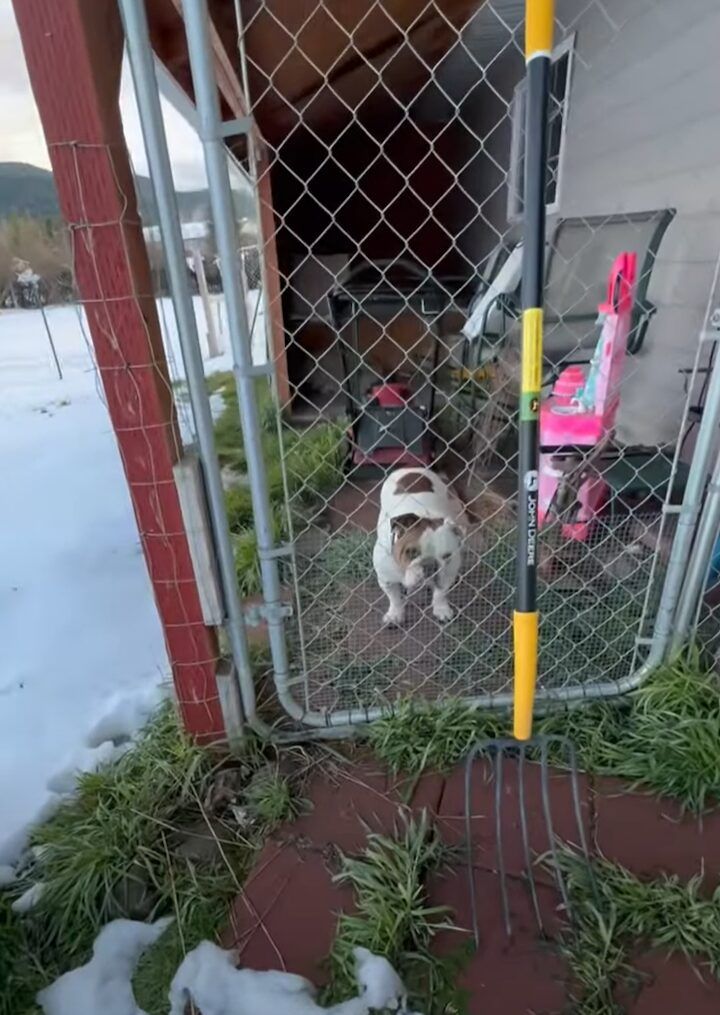 3. 外に出たいアピールをするブルドッグ。フェンスの前でじっと立ち尽くしているけど実は・・!!【アメリカ・動画】