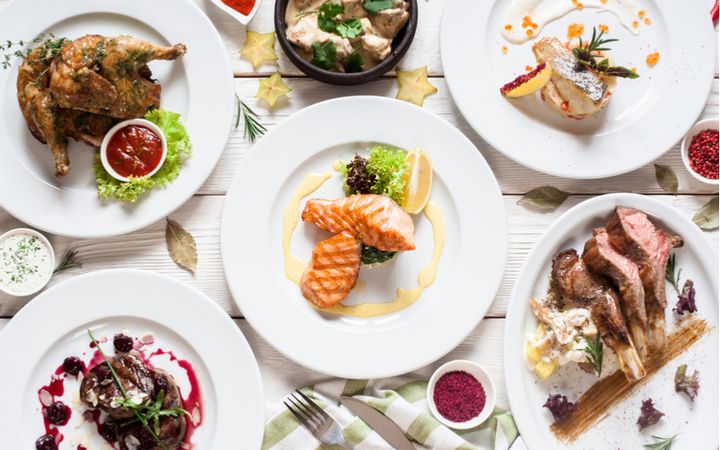 温かい料理と冷たい料理は、それぞれ別のお皿に。ソースが混ざりそうな料理は、単品でお皿を使いましょう。ほかの料理と組み合わせないようにすると味も混ざらず美味しくいただけます。