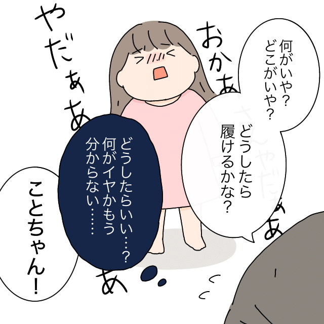 保育園から帰ってくるとケロッとしているのに・・毎日着替えの度に癇癪を起こすことねちゃんの様子にお手上げ状態だったまちさん、ある日のお風呂上がりで「いつもより落ち着いてるな」と声を掛けたところ、やはり激しく嫌がって暴れてしまい・・