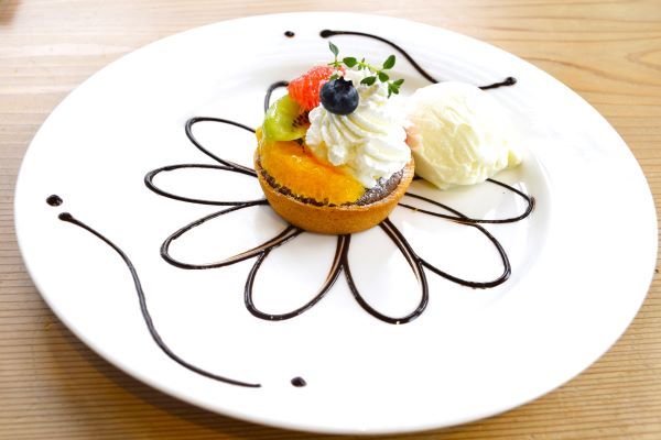 食後のデザートには「季節のフルーツタルト」(693円)もおいしくいただきました♪
