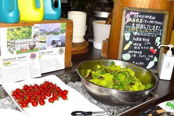 オーナーでもある「芦田農園」と連携していることもあり、このカフェには直接農家さんから新鮮な旬な野菜や果物が届きます。 また基本的には兵庫県産の「地産地消」をこだわりとし「野菜を口にした時のおいしい感動を自信を持ってお届けします」と新鮮な物を新鮮なうちに提供できるようにしています。
