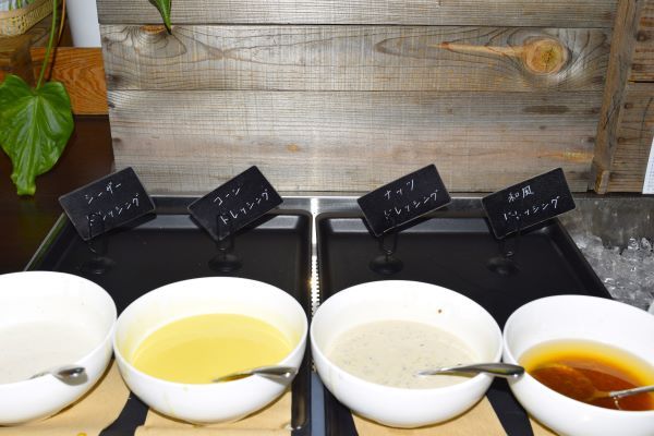 和風・ナッツ・コーン・シーザーと4種類のドレッシングが用意されており、私が好きなのはナッツドレッシング。この日もサラダにナッツドレッシングをたくさんかけて、おいしくいただきました♪