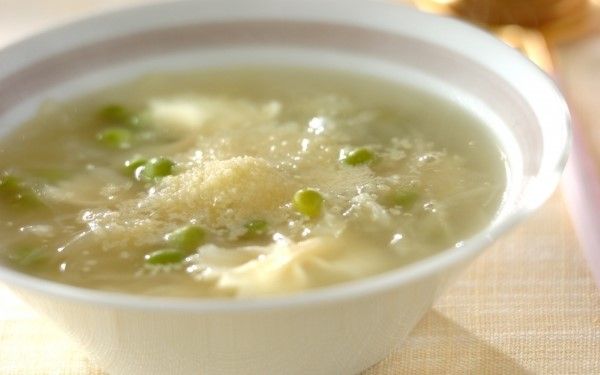 グリンピースの洋風スープにマカロニをプラスして、ボリューム満点に。グリンピースの甘みと粉チーズのコクが合わさって絶品です。たった10分で作れるので、朝食や夜食にもぴったり。