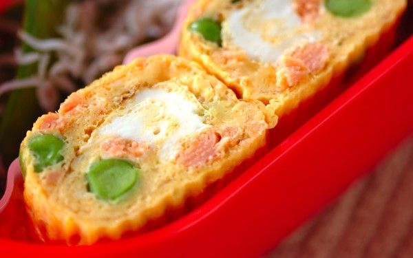 卵焼きにグリンピースと鮭フレークを加え、彩りと栄養価をUP! 甘みと塩気のバランスが絶妙で、グリンピースの食感もアクセントに。卵焼きのマンネリ解消にぜひお試しを。