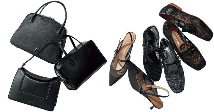 ▶︎キラキラ、シアー…普段着もキレイ目に変わる「黒フラット靴」3選