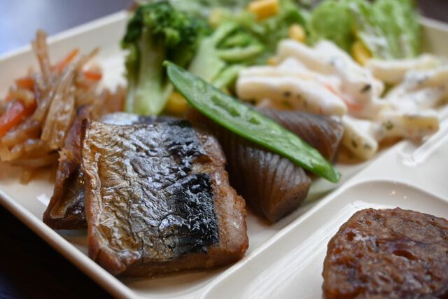 朝にうれしいサラダのほかに、きんぴらごぼうや野菜の白和え、出汁巻き卵などが並びます。季節限定メニュー「ニシンとこんにゃくのふっくら炊き」は味がよく染みて、白いご飯に合いました。