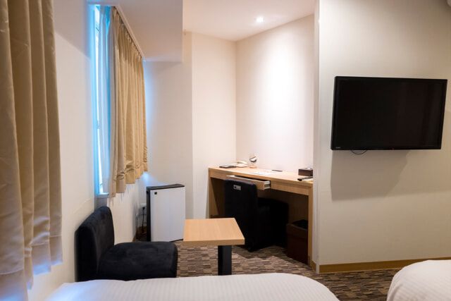 ▲ツインルームは部屋の形が変わっていますが、広めのデスクもありました
