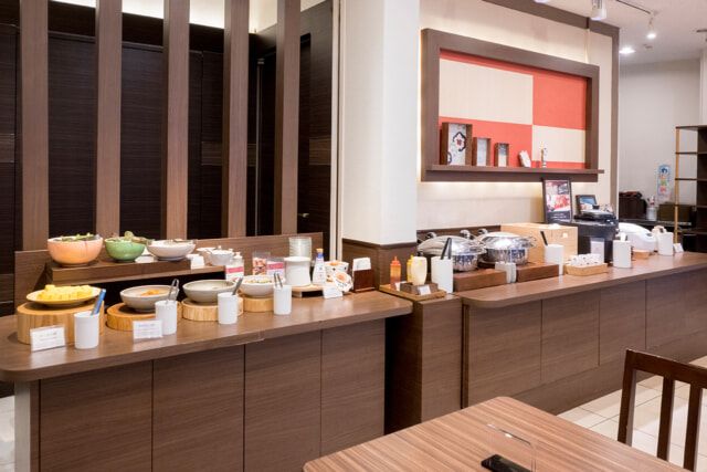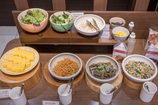 朝食は、出発が早い方も利用しやすい6時スタート。マグロの刺身を筆頭に、サラダやお惣菜、デザートなど、ビュッフェ台には和洋の料理が並ぶほか、ホテルがある入谷の雰囲気に合わせ、深川めしやあんみつなど “下町の味” も楽しめます。外来の方は¥1,900。