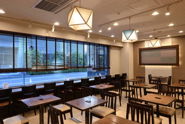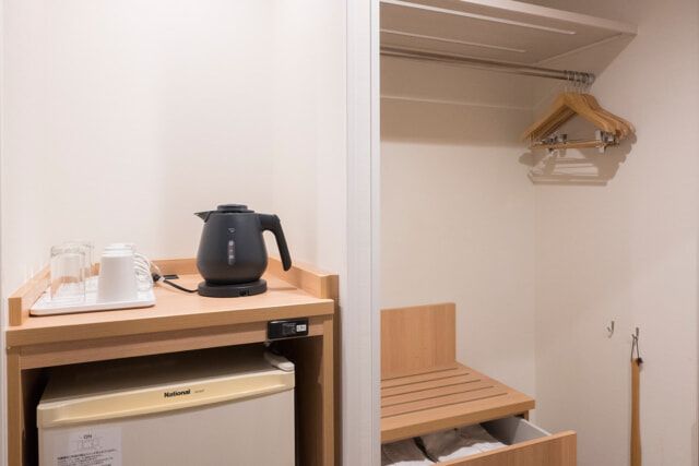 1階のラウンジでは、宿泊客は14時から23時までフリードリンクが用意され、21時から23時まではお茶漬けを無料で楽しめます。宿泊者以外の方も11時から21時まではラウンジの利用が可能。フリードリンクがついて1時間¥500、4時間以上¥2,000です。